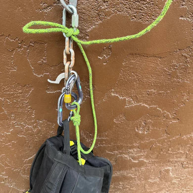 This hook is perfect for top rope solo fixed line rehearsal on a multipitch route. Bring a tiny tagline and haul your kit behind you, without needing a partner to release the bag.