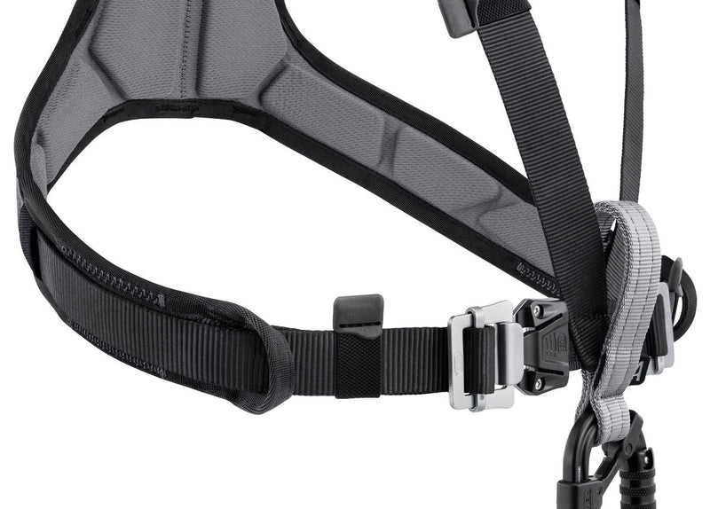The CHEST’AIR chest harness transforms FALCON, FALCON MOUNTAIN, AVAO SIT and SEQUOIA SRT seat harnesses into fall-arrest harnesses. With multiple certifications, CHEST’AIR can be attached to a climbing or mountaineering harness to keep a victim upright during a rescue. It simply connects to the ventral attachment point of the seat harness and fastens via the FAST LT buckle at the chest, for quick donning. It adapts easily to different body types with its DOUBLEBACK self-locking buckles on the shoulder straps and ventral strap. Made with 3D foam padding, the CHEST’AIR chest harness provides additional comfort while hanging.